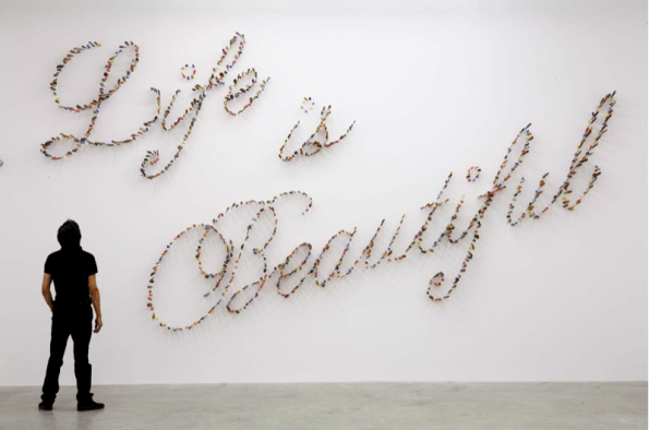This is beautiful. It’s a 2009 exhibit by Farhad Moshiri, Iran, called Life is Beautiful. You can go watch the video on his website.